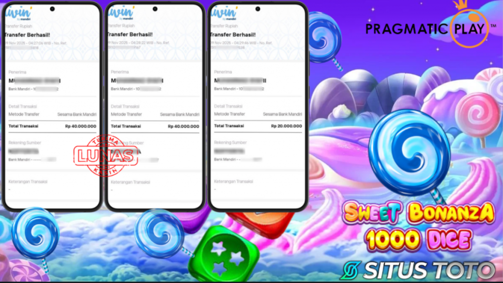 Selamat kepada User ID : K*** Telah berhasil mendapatkan kemenangan besar pada permainan Sweet Bonanza 1000 Dice – Pragmatic Play.