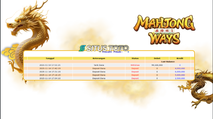 Posted on November 14, 2025November 14, 2025 By Operator Situstoto No Comments on JELAS GACOR!!! KEMENANGAN Rp, 99,500,000,- DENGAN BUKTI NYATA MELESAT DENGAN CEPAT KE REKENING!