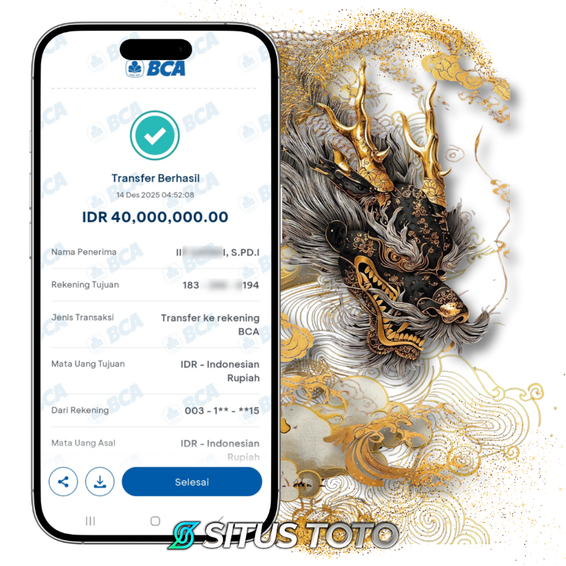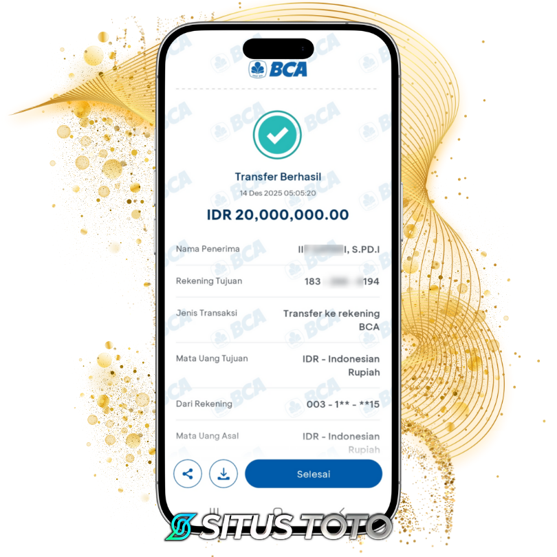Setelah mengisi formulir withdraw dengan proses secepat kilat pihak SITUSTOTO sudah melakukan transfer kepada pemilik User ID dan dana sudah dapat di cairkan oleh pemenang. Bukti pembayaran yang kami berikan merupakan bukti pembayaran yang SAH / VALID yang langung di dapatkan melalui tanda transfer transaksi dari Bank yang dituju.