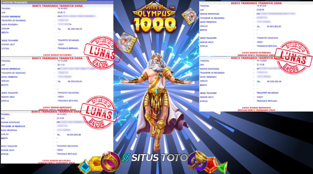 Posted on October 19, 2025 By Operator Situstoto No Comments on SELAMAT KEPADA USERID L***** PEMENANG PERMAINAN Gates Of Olympus 1000 Rp 200,000,000,- DAN LANGSUNG DI BAYAR LUNAS !!!