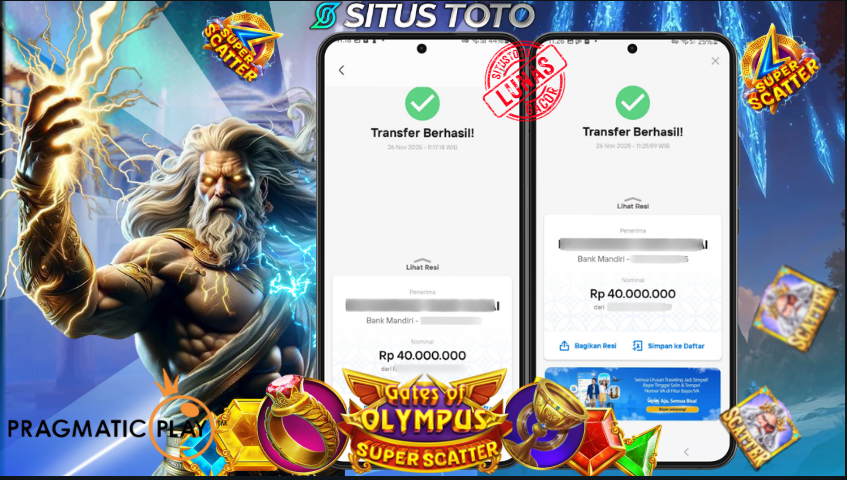 Posted on November 26, 2025November 26, 2025 By Operator Situstoto No Comments on SELAMAT KEPADA USERID Rxxxxxxxxxx, PEMENANG PERMAINAN Gates Of Olympus Super Scatter – Pragmatic Play Rp 103,339,500 Dan melakukan withdraw sebesar Rp.80.000.000,- DAN LANGSUNG DI BAYAR LUNAS !!!